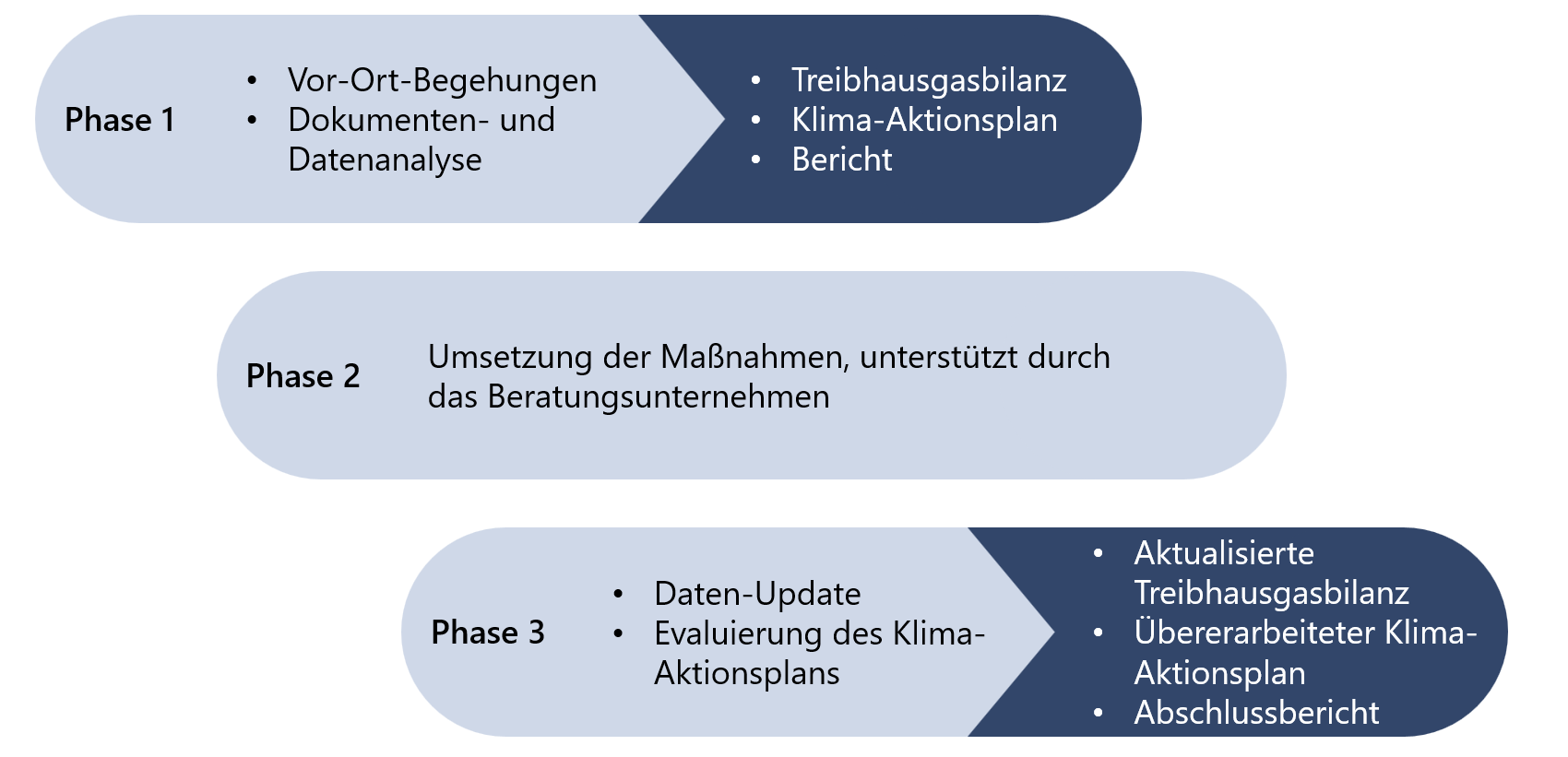 - für größere Einrichtungen: Grundlage für weitere Schritte wie Etablierung des europäischen Umweltmanagementsystem EMAS (Eco-Management and Audit Scheme) sowie Nachhaltigkeitsberichterstattung, auch gemäß der Corporate Sustainability Reporting Directive (CSRD)